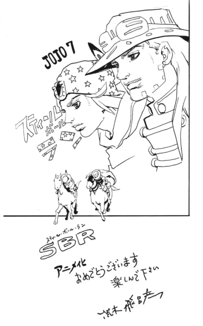 Además, presentó una ilustración especial que muestra a Gyro Zeppeli y Johnny Joestar junto a sus caballos, quienes tendrán un rol clave en las batallas y el desarrollo de la historia.