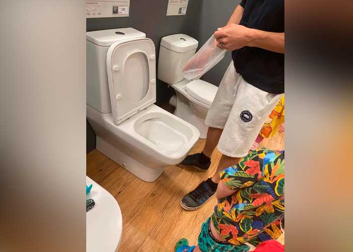 Una pareja de padres jóvenes tuvo que limpiar los residuos que uno de sus pequeños hijos depositó en una taza de baño de exhibición en una tienda. Revisa aquí los bochornos detalles.