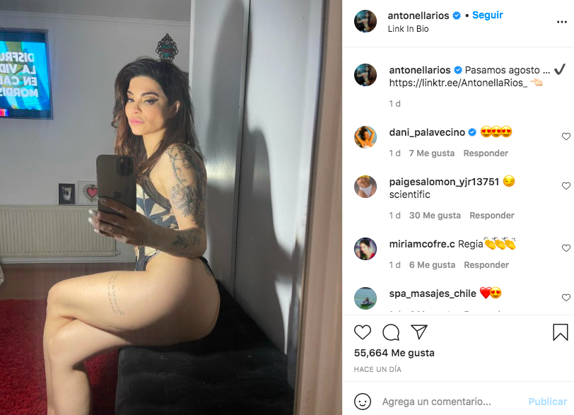 Antonella Ríos es una fiel usuaria de las redes sociales, específicamente en Instagram, donde acumula más de un millón de seguidores. Plataforma donde constantemente comparte diferentes imágenes.