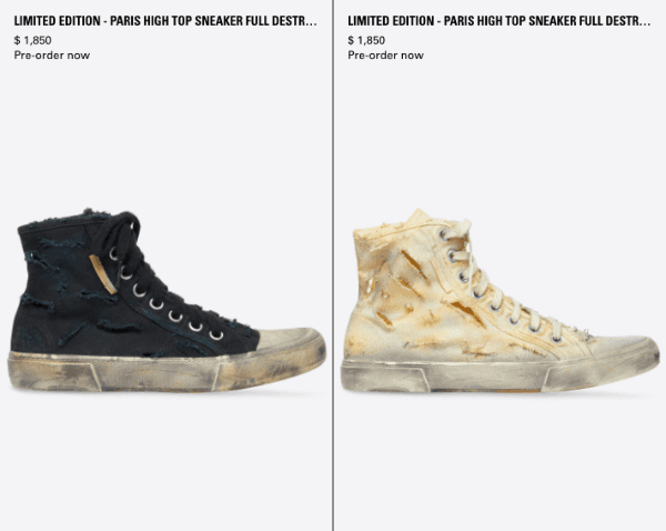 Las "sneakers París" son unas zapatillas desgastadas, de colección limitada ya que solo habrán 100 ejemplares. Desde la marca dirigida por Demna Gvasalia, aseguran que buscan reflejar el uso de unas zapatillas de 100 años.