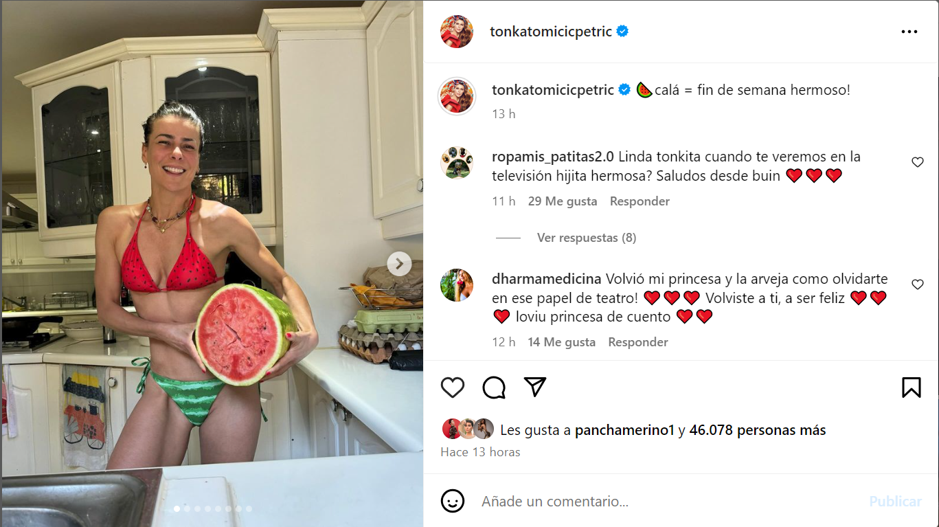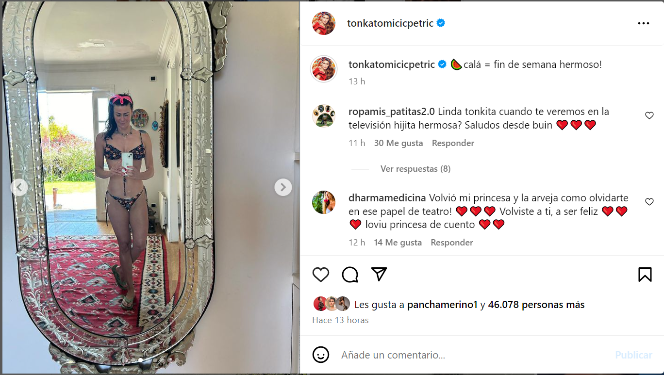 “La más hermosa de la TV chilena”, “guapa” y “cabra linda, estás volviendo a ti”, fueron algunos de los comentarios que recibió Tonka Tomicic.