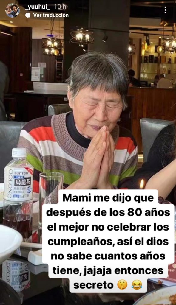 Lee explicó una tradición china con respecto a la celebridad a los cumpleaños: “Mami me dijo que después de los 80 años es mejor no celebrar los cumpleaños. Así el dios no sabe cuántos años tiene, jajaj, entonces es secreto”.
