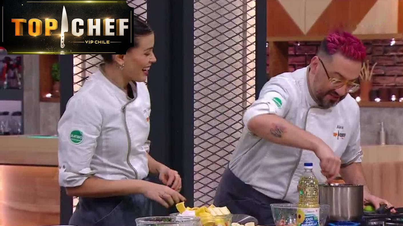 En una prueba donde los momentos sugerentes se multiplicaron, Benjamín Nast le dio en la boca un trozo de comida a la chef Fernanda Fuentes, desatando las sensaciones y las risas en Top Chef VIP.